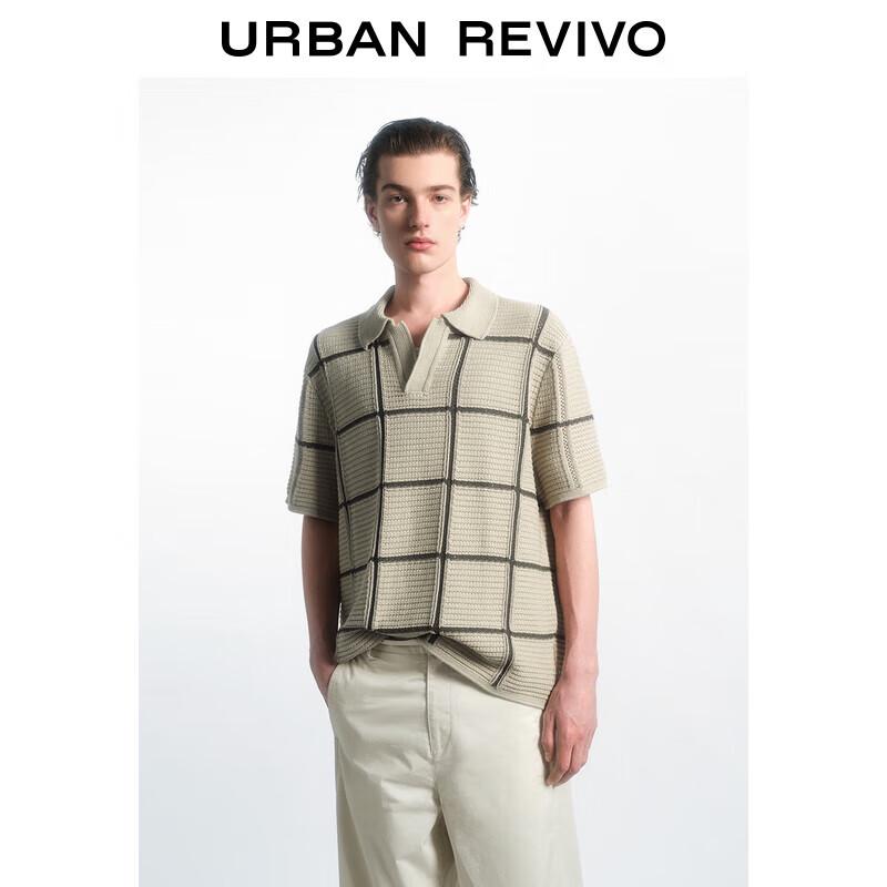 UR Men's Textured Hollow Grid Knit Polo Shirt