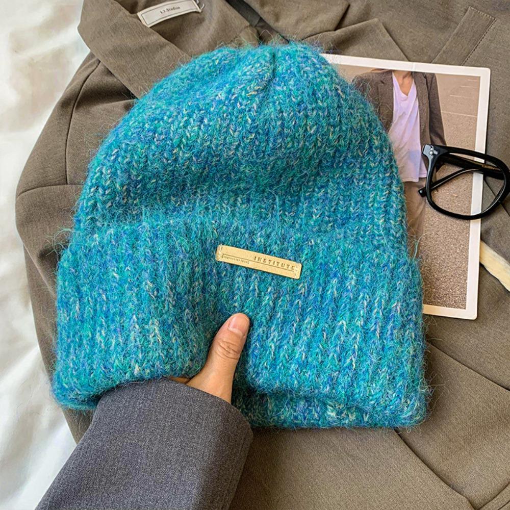 Thickened Beanies Hat Korean Style Pullover Hat Letter Chic Knitted Hat Outdoor
