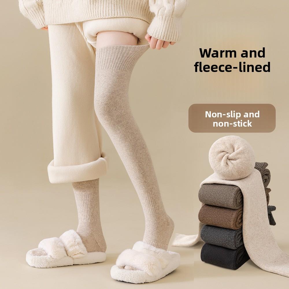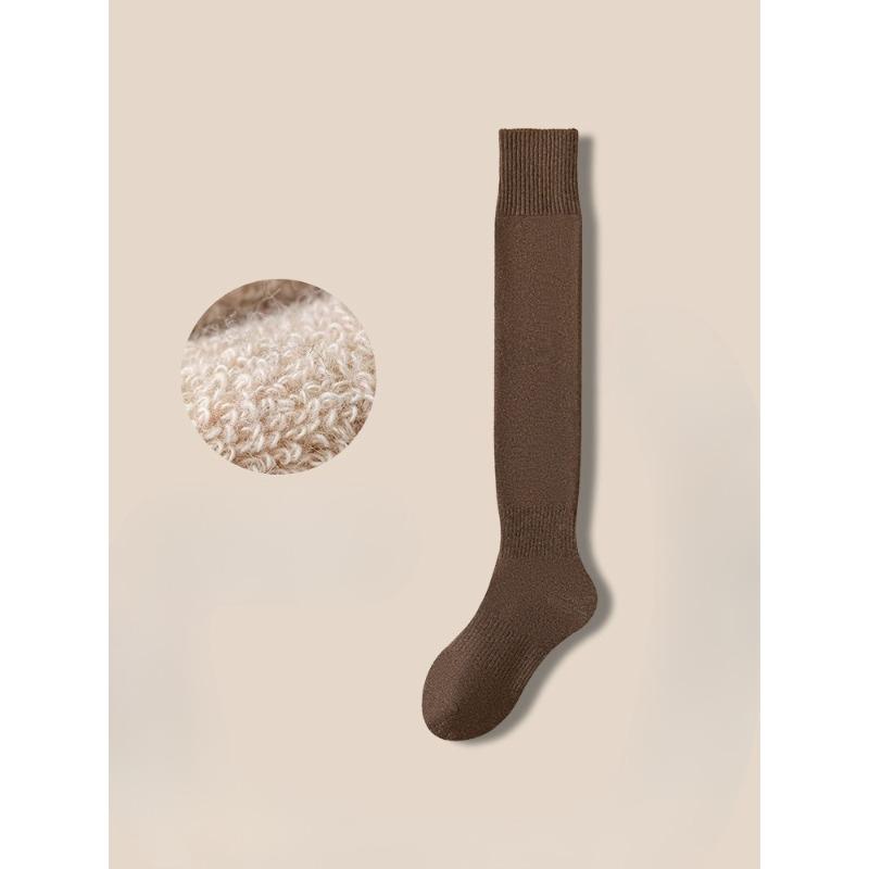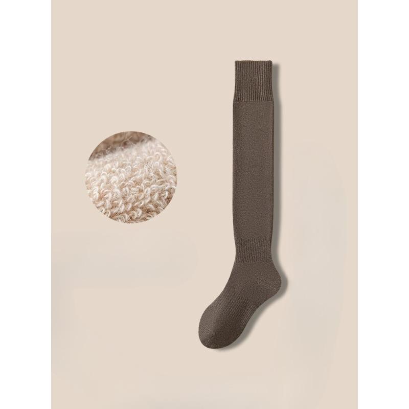 Осень и Зима, Женские флисовые носки до колена с толстыми петлями для тепла, из чистого хлопка для женщин