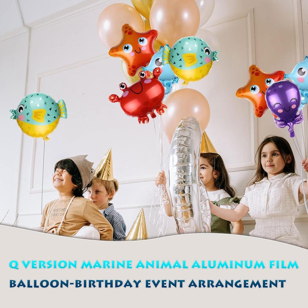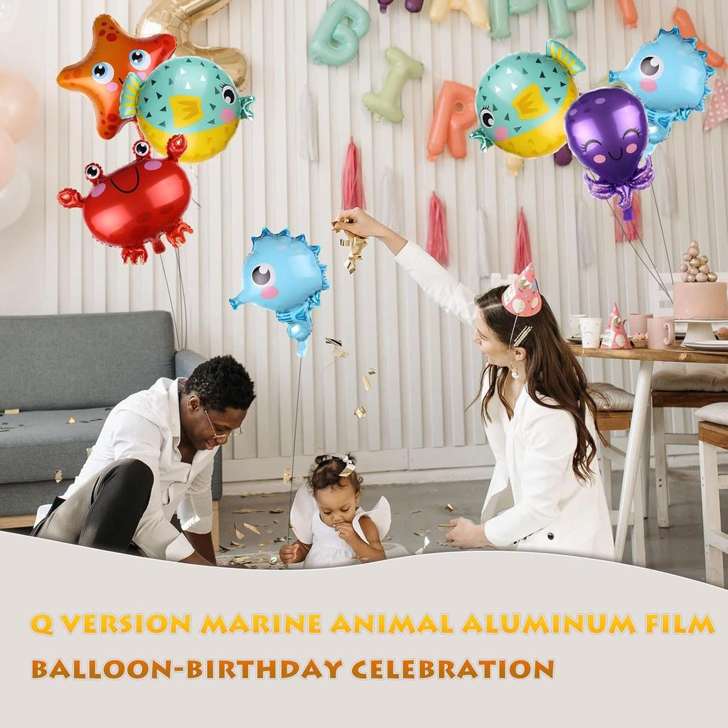 BLMHTWO 5 PCS Sea Animal Balloons,Under The Sea Balloons Foil Party Decorations Seahorse Starfish Globefish Crab Octopus for Kids Birthday Party