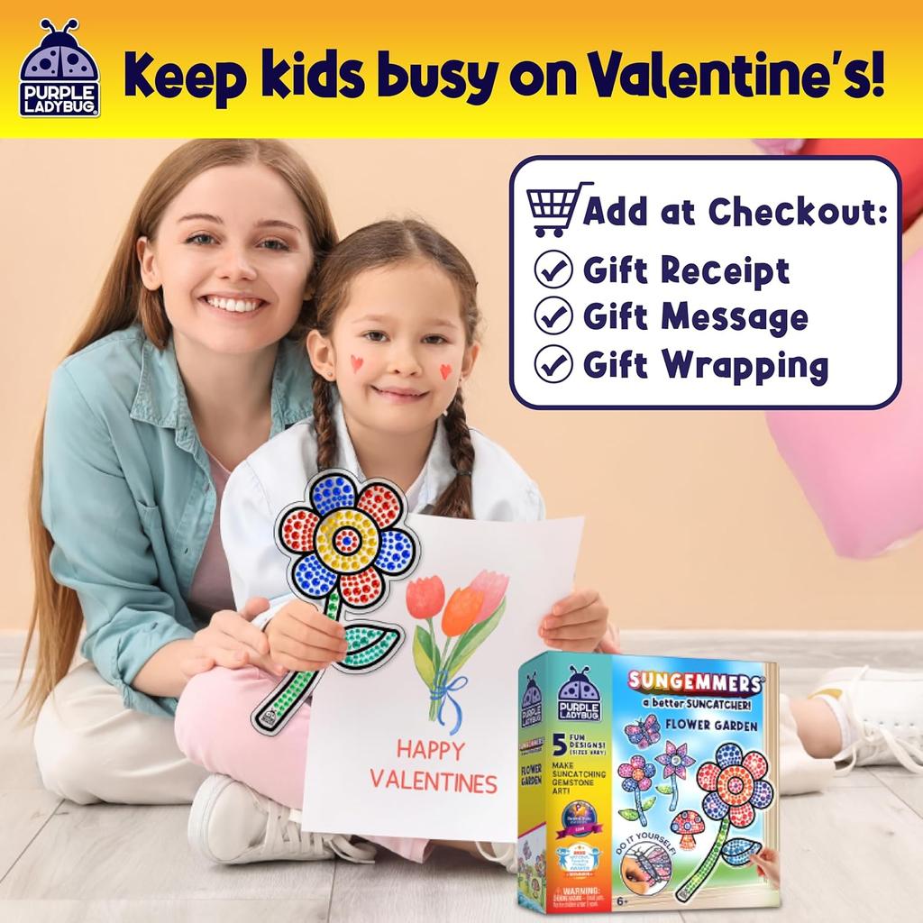 PURPLE LADYBUG SUNGEMMERS Suncatcher Gem Art for Kids - Fun Valentines Day Crafts for Ages 6-12, Birthday Gift for Girls 6-8, 8-12, Arts & Crafts