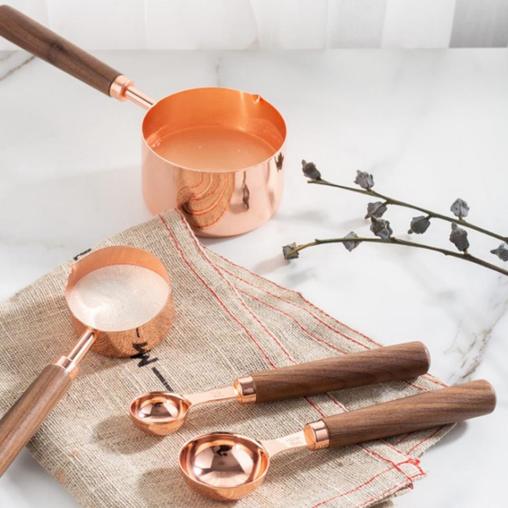 Stainless Steel Kitchen Rose Gold Measuring Spoons Set Measuring Cups Baking Tool Sugar Scoop