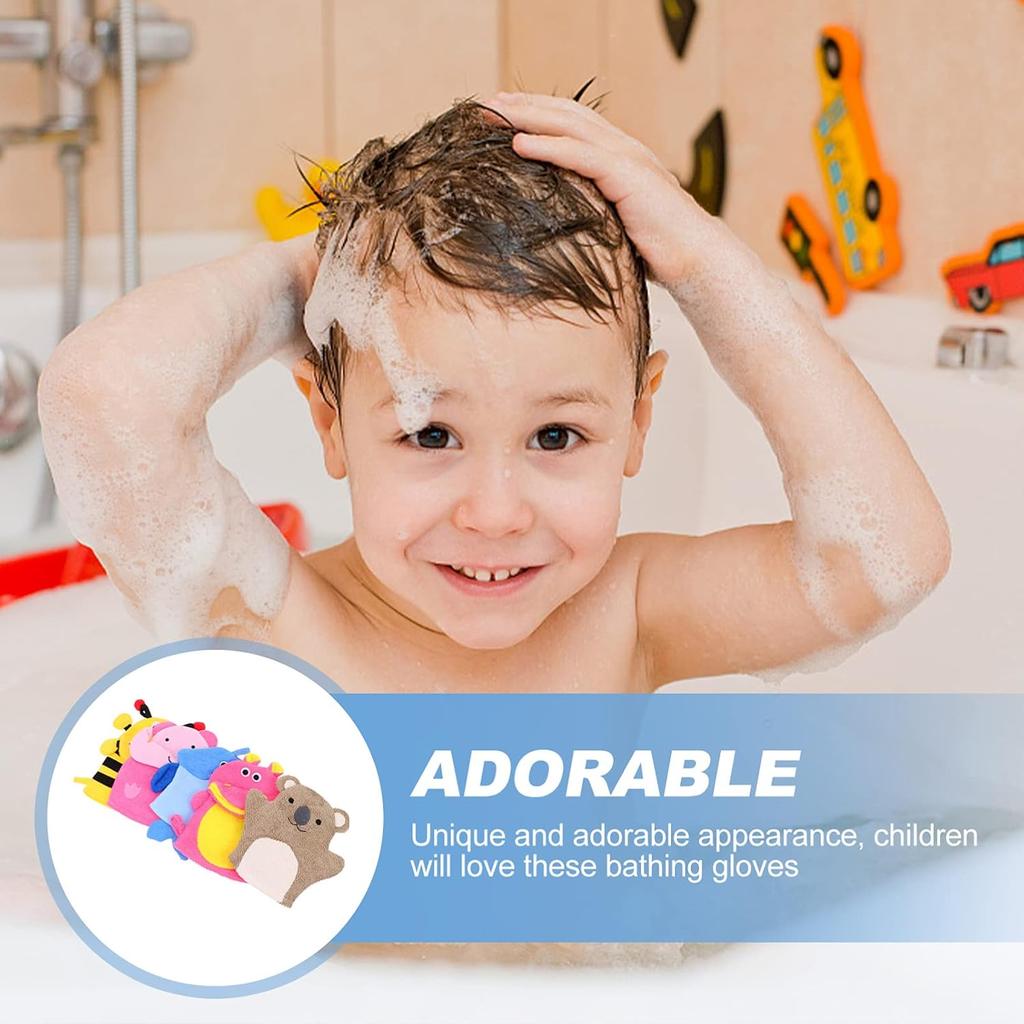 Kids Bath Mitts, 5 Pcs Cute Animal Washcloths Gloves, Bath Sponge Body Washcloth Mitt for Boys Girls Children Hand Bathing Shower