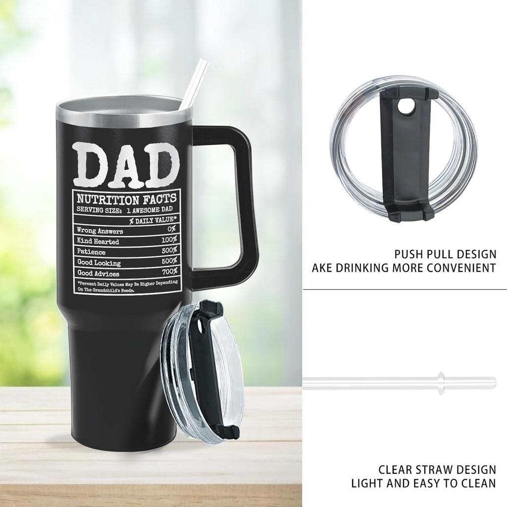 Premium Material:Designed for dad, The cup body is made from 18/8 food-grade stainless steel and this tumbler keeps drinks hot for 3 hours and cold for over 9 hours thanks to its double-wall insulation. a best gifts for dad who wants nothing.