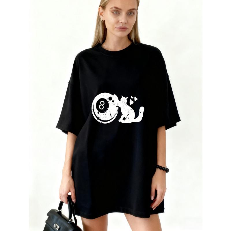 Платье-футболка оверсайз с принтом черного шара 8 и кошки, повседневная уличная одежда для женщин — купить товар онлайн с бесплатной доставкой по всему миру!