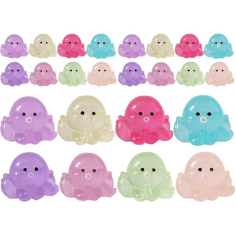 YARNOW 24pcs Miniature Octopus Figurine Luminous Tiny Octopus Mini Resin Octopus Glow in The Dark Miniature Figures for Aquarium Landscape