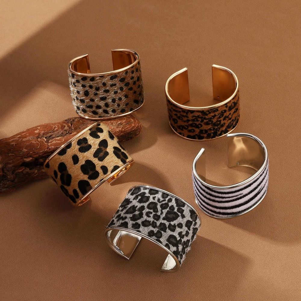 Дизайн для меньшинств Браслеты-манжеты с леопардовым принтом Металлический преувеличенный браслет Женщины