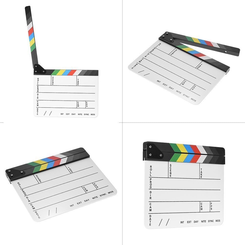 Professional Movie Directors Clapboard, Photography Studio Video TV Acrylic Clapper Board Dry Erase Film Slate Cut Action Scene Clapper with Color