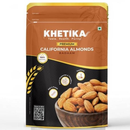 Khetika Премиальный Калифорнийский Миндаль 1 кг | Сухофрукты, Миндаль, Бадам, Ядро миндаля, Богат клетчаткой, Укрепляет иммунитет, Здоровые питательные снеки
