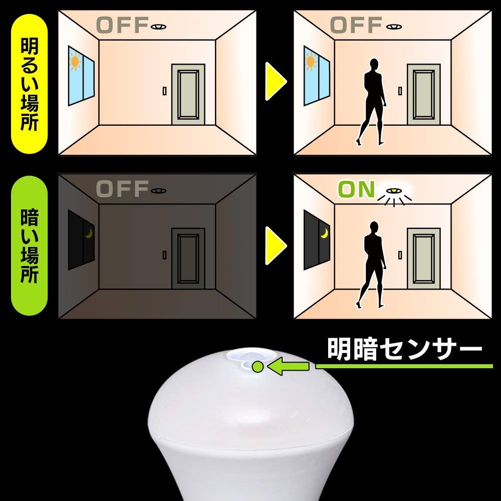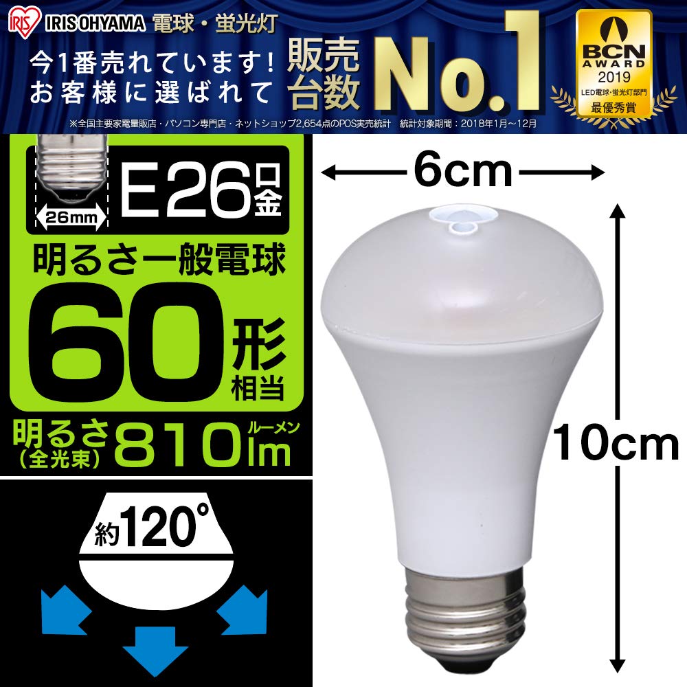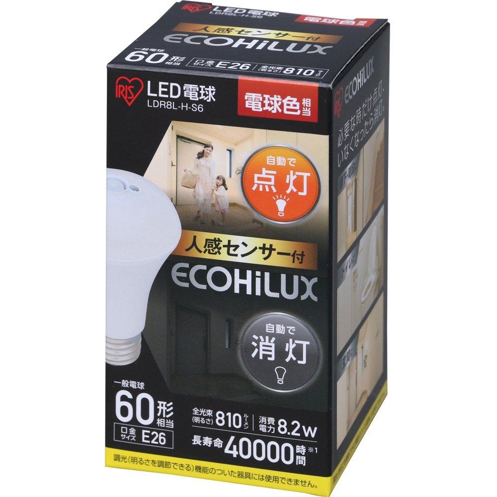 Iris Ohyama LED Light Bulb with Motion Sensor, E26 Base, 60W Equivalent, Warm White, LDR8L-H-S6