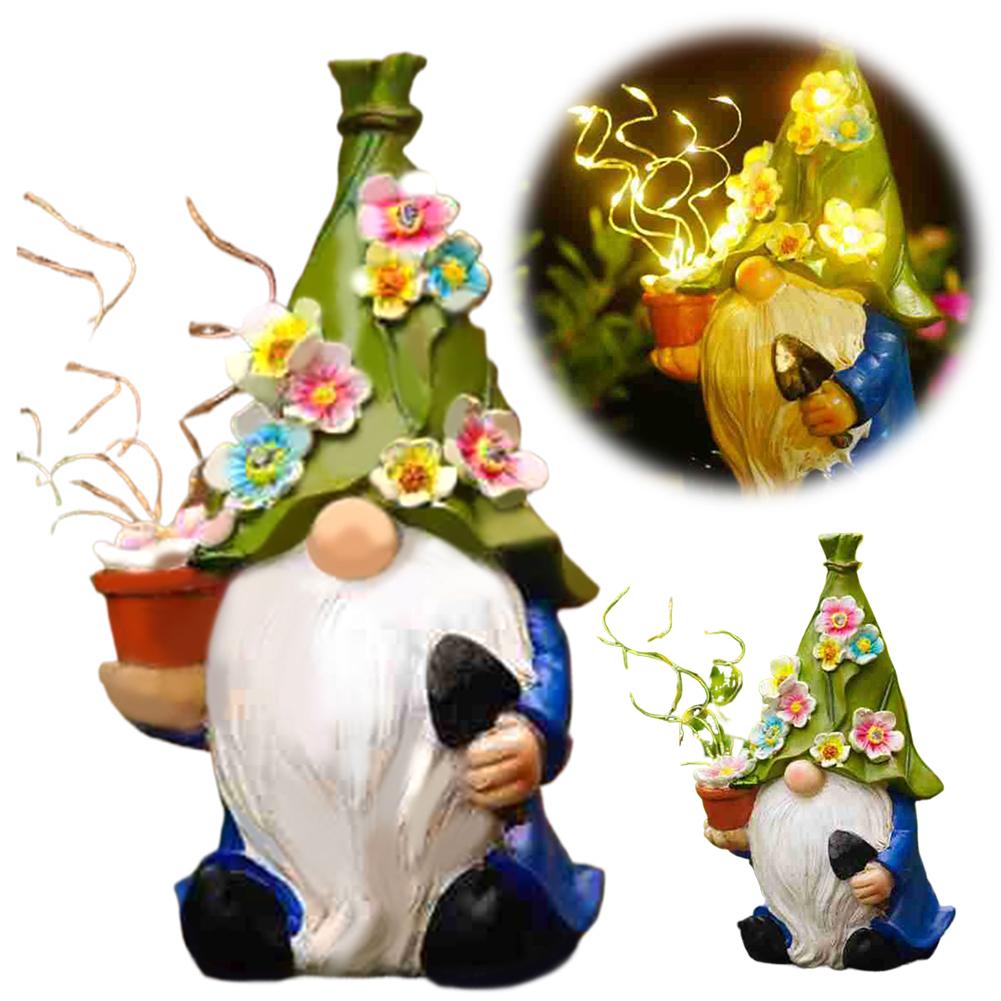Garden Hallway Solar Elf Light Garden Gnome Statues with LED Lighted Flowers Resin Gnome Figurine for Patio Yard Lawn Decoration
