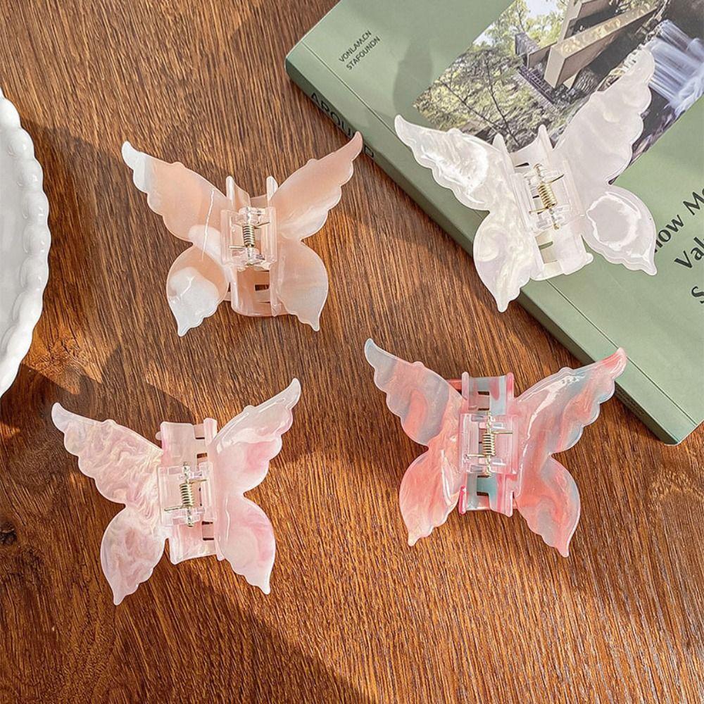 Цветная заколка для волос в виде бабочки, меняющая цвет, большая зажим-акула, ацетатная заколка-коготь бабочка, для девочки