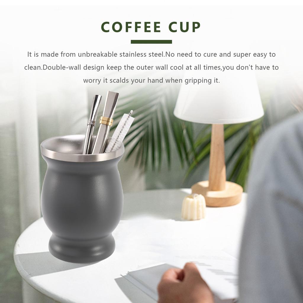 Good-Double-Wall Stainless Yerba Mate Gourd Tea Cup Set Coffee Water Cup With 2 Bombillas Straws Spoon&Clean Brush 8Oz