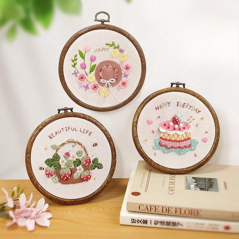 Handmade Embroidery Kit DIY Material Package 3D Cross Stitch Circular Ornament Contain Embroidery Tools Embroidery Frame