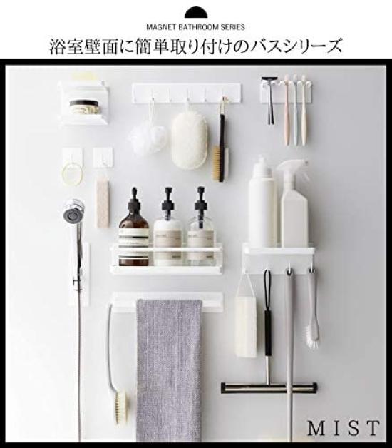 Магнитная полка для ванной Yamazaki, Широкая, Белая, Прибл.. Ш28 x Г9.5 x В8см, Дизайн с туманом, Хранение в ванной, С крючками, Номер продукта: 4237