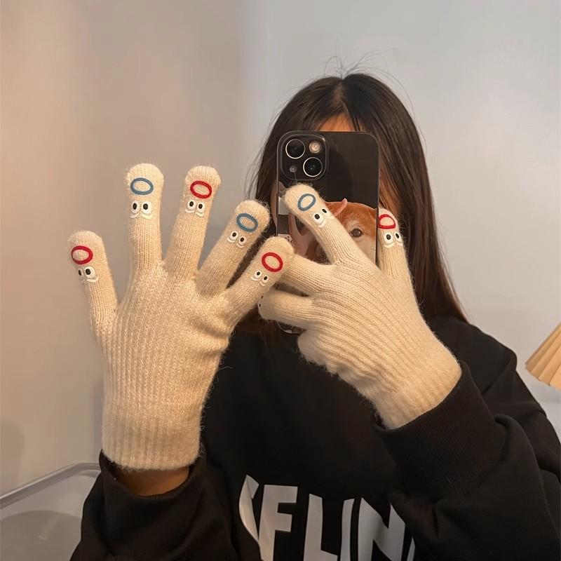 Смешные перчатки с большим ртом, странные перчатки, милые шерстяные вязаные утолщенные теплые перчатки женские