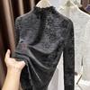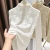 Пуловеры Топы Женские Длинные Рукава Осень Зима Блузка с Подкладкой Оверсайз Полувысокий Воротник Свободная Рубашка с Длинным Рукавом Приталенные Пуловеры Топы