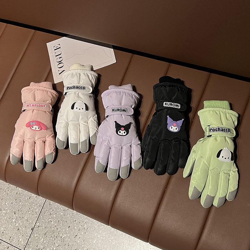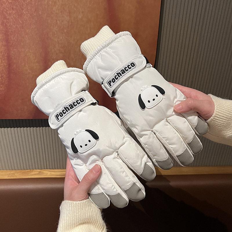 Утепленные мультяшные женские водонепроницаемые перчатки с пальцами для езды, ветрозащитные и холодостойкие, милые теплые бархатные лыжные перчатки