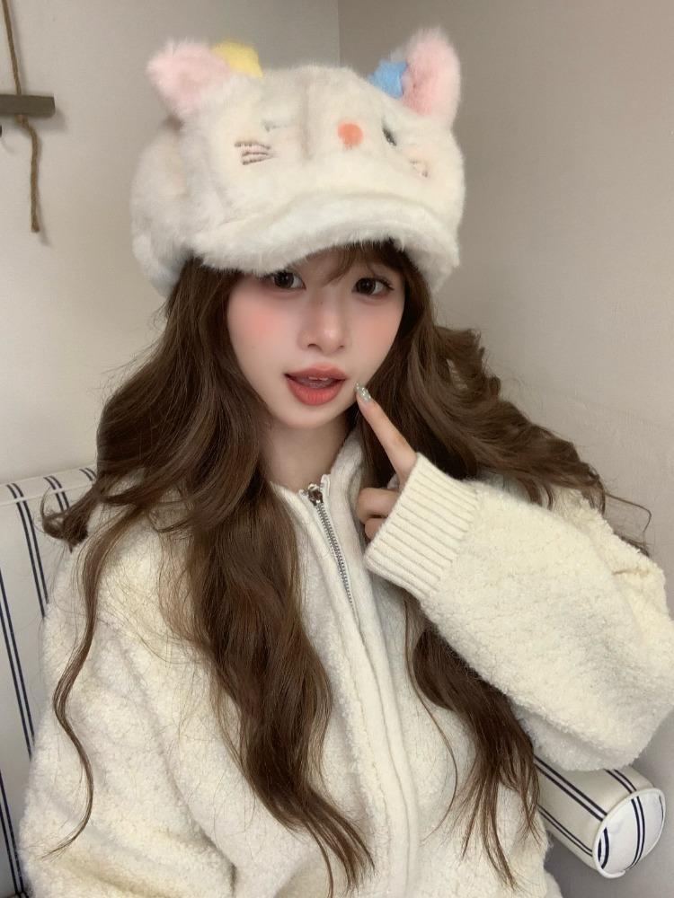 2025 новая милая плюшевая шапка-котенок женская сезонная плюшевая для тепла и от холода, показывающая лицо, с маленькими ушками, шапка-ушанка