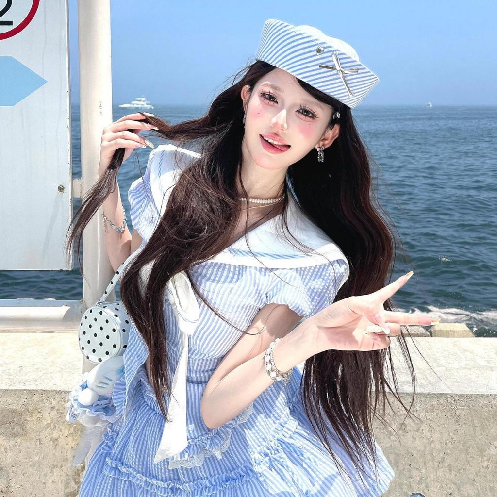 Любовь вспышка бриллиант бант матросская шляпа японский jk милое и милое лицо маленький козырек морской стиль берет дети