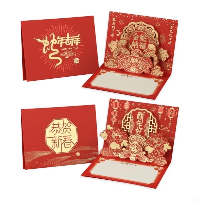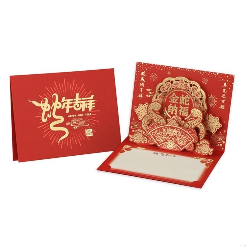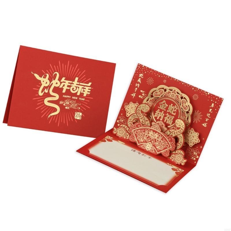Year of the Snake 2025 Popup Spring Festival with Envelope Chinese New Year Blessing Card for Family and Friend A0KF