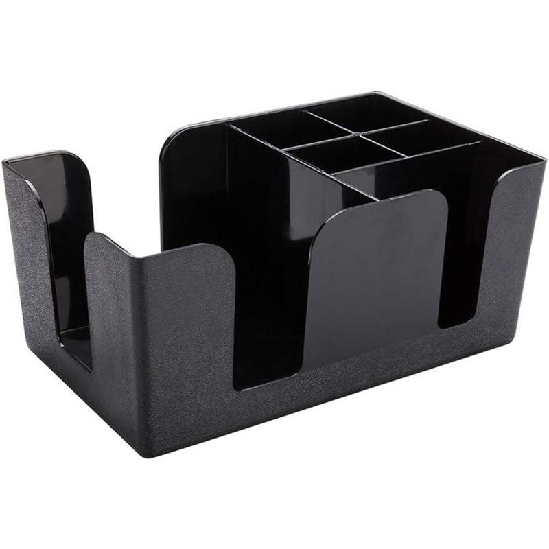 ABMH-Napkin Holder-Black Plastic 6 Compartments For Straws Napkins Condiments Bar Organizer For Homes Bars