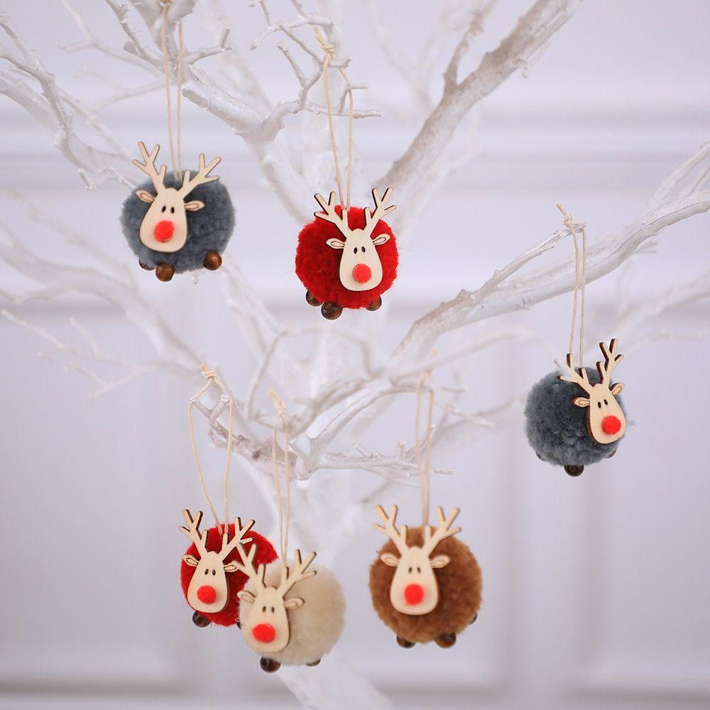 Wooden Elk Christmas Tree Ornaments Felt Deer Elk Hanging Pendant Wooden Deer Ornaments Christmas