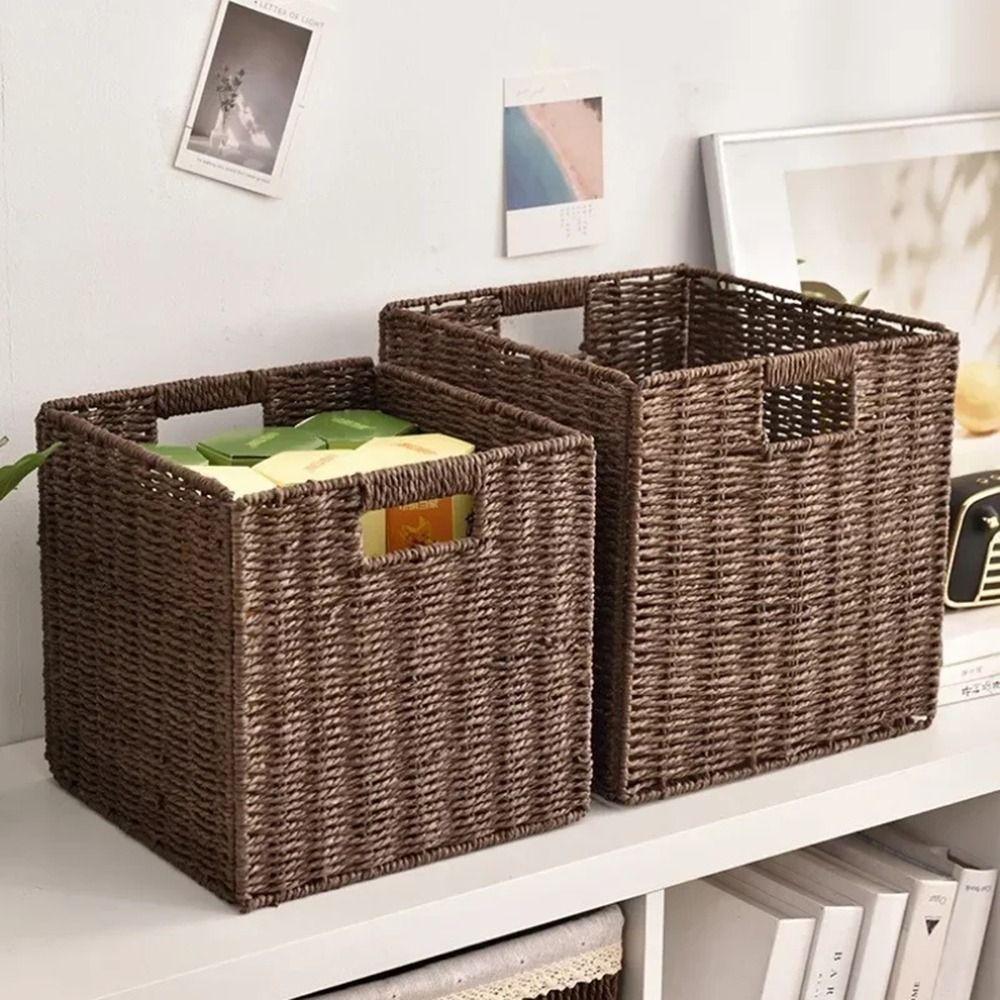 Square Imitation Rattan Basket Hand Woven Woven Storage Bin Simple Sundries Organizer Closet
