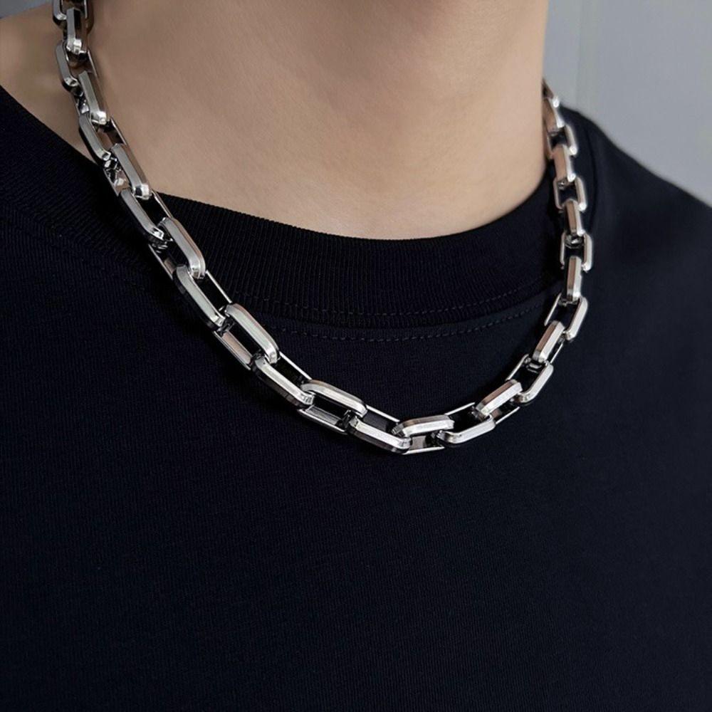 Silver Color Metal Necklace Thick Hollowed-out Necklace Hip Hop Man Necklace Daily Wear