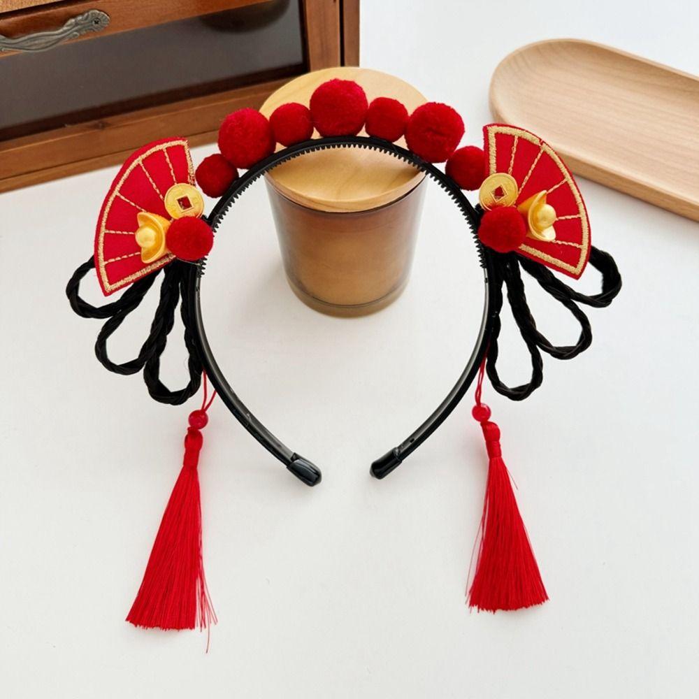 Головной убор с кисточками, китайский новогодний головной убор, косичка для волос, палочки для волос Hanfu, детский парик, повязка на голову, дети