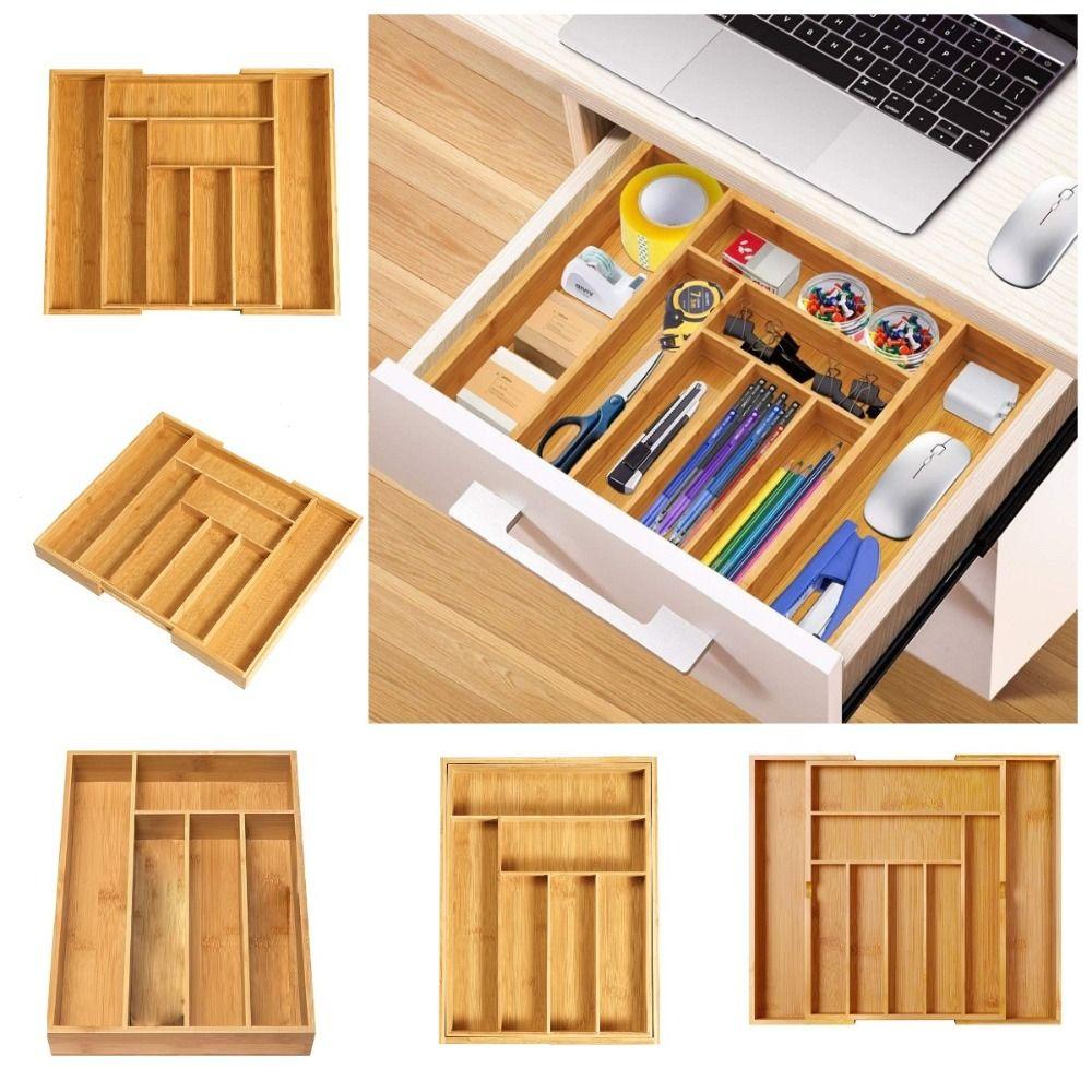 Бамбуковый органайзер для столовых приборов в ящик, расширяемый желобчатый лоток для столовых приборов, разделители для ящиков шкафа, столовые приборы