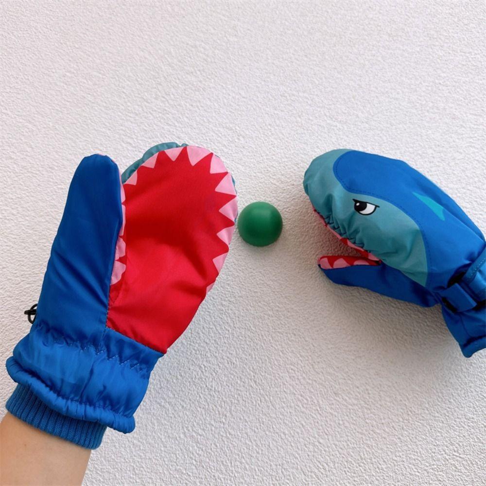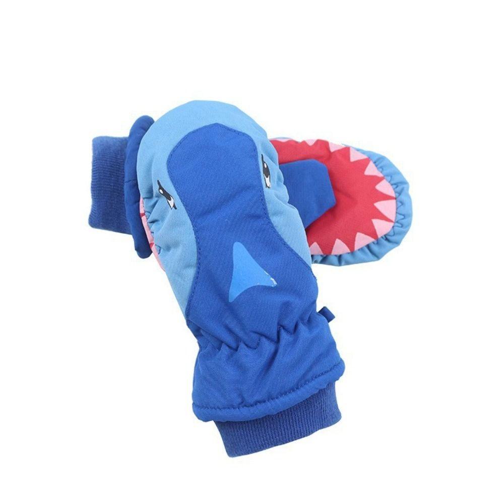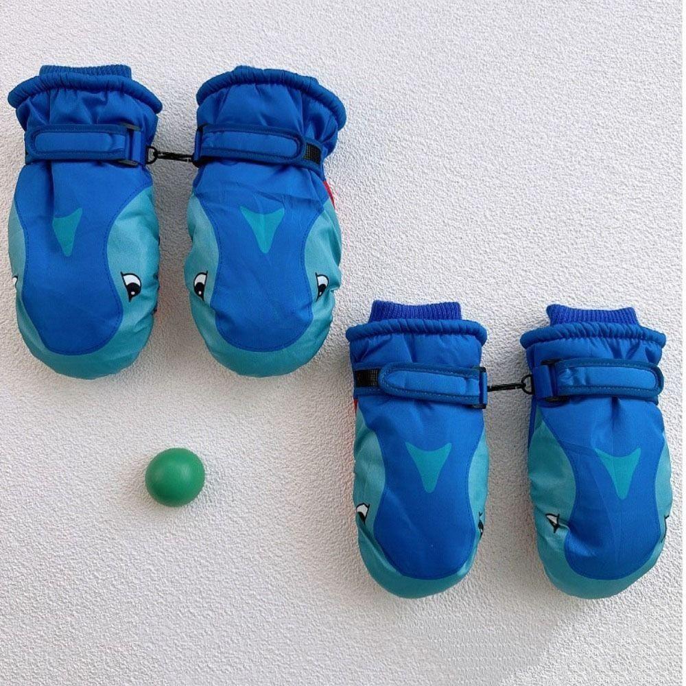 Мультяшные детские лыжные перчатки с рисунком акулы, зимние лыжные перчатки, детские варежки для сноуборда, для катания
