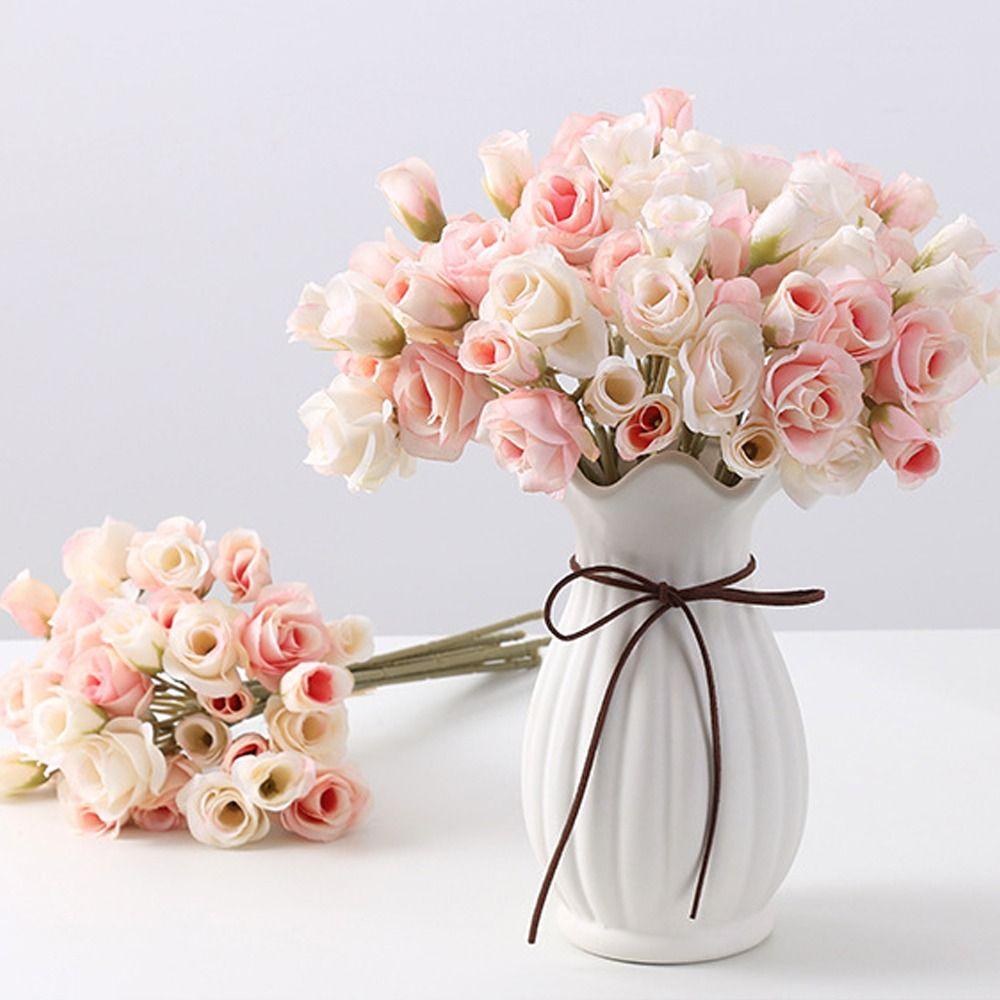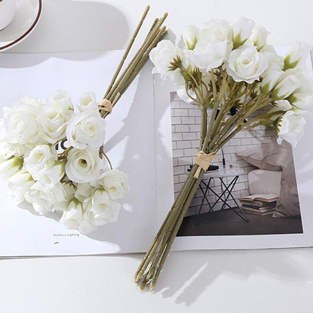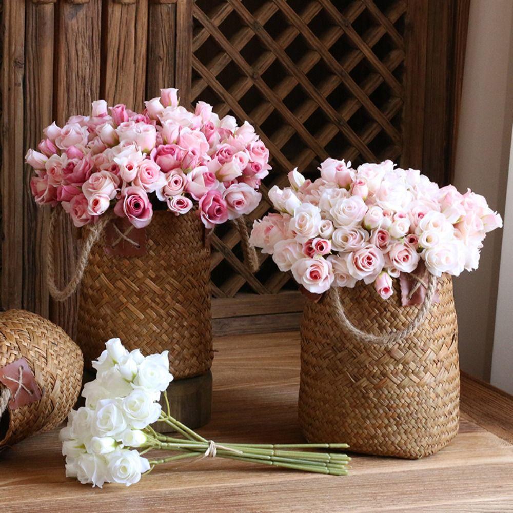 Realistic Artificial Roses Flowers Bouquet Mini Fake Flowers Small Tea Rose Wedding Party Decor