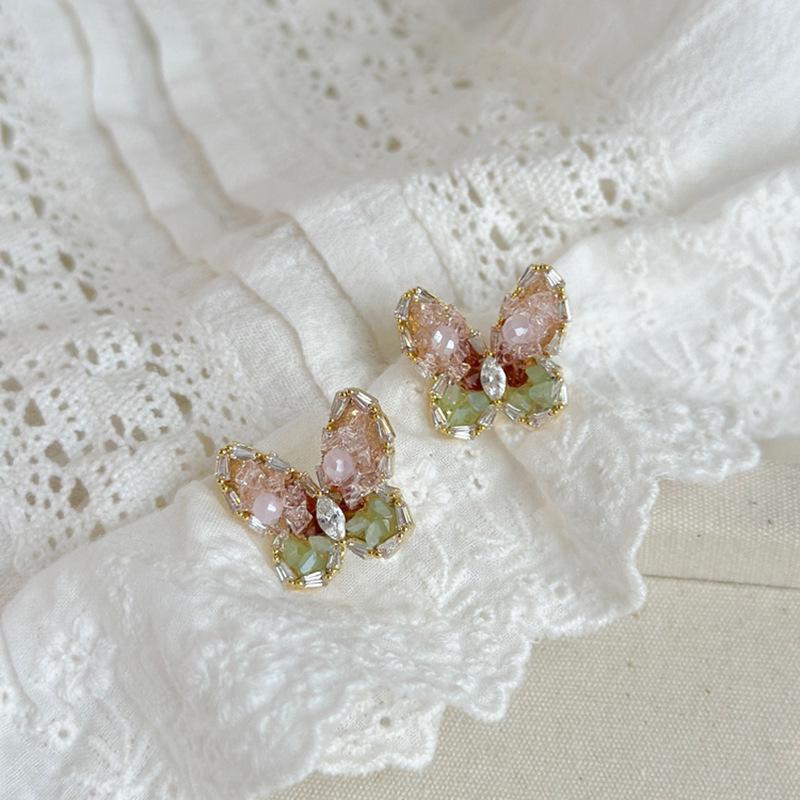 Посеребренные серьги-пусеты с кристаллами в виде бабочек с градиентом - Мода 2025 для женщин