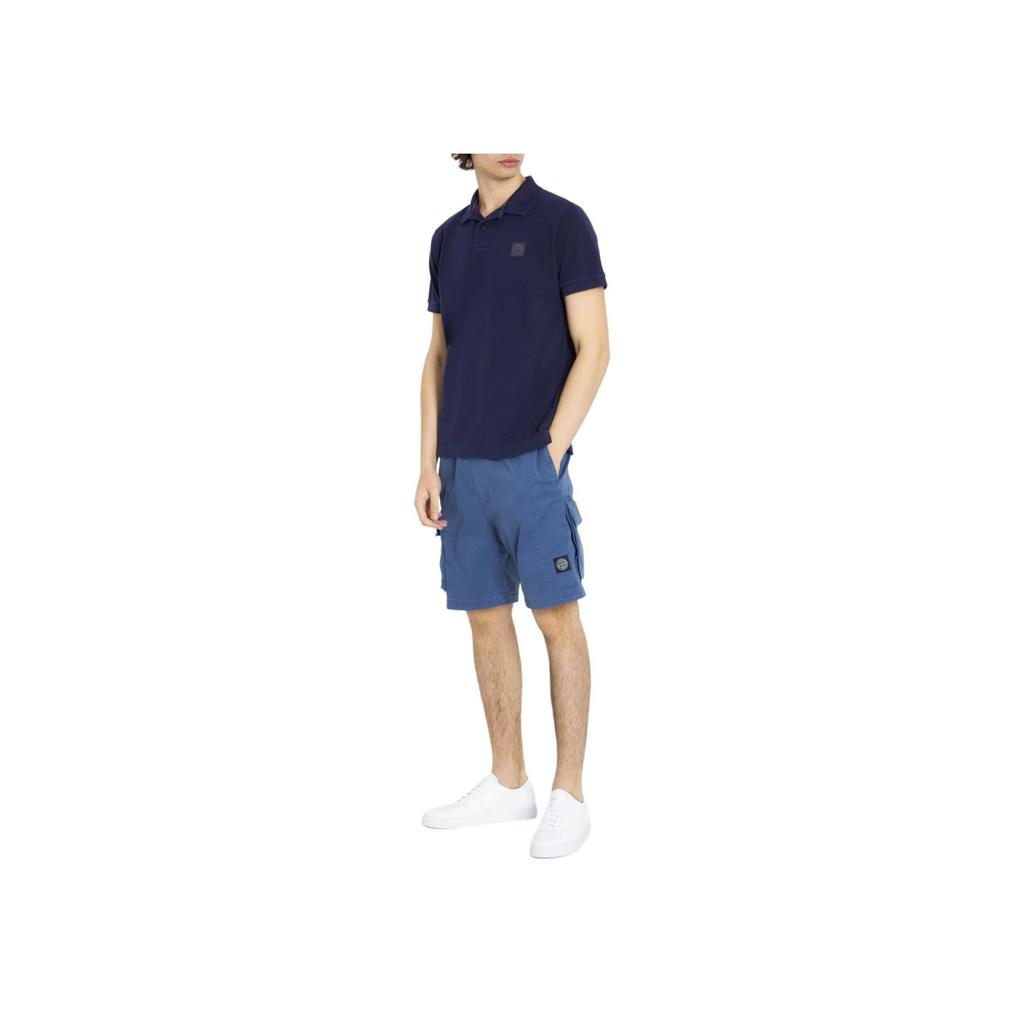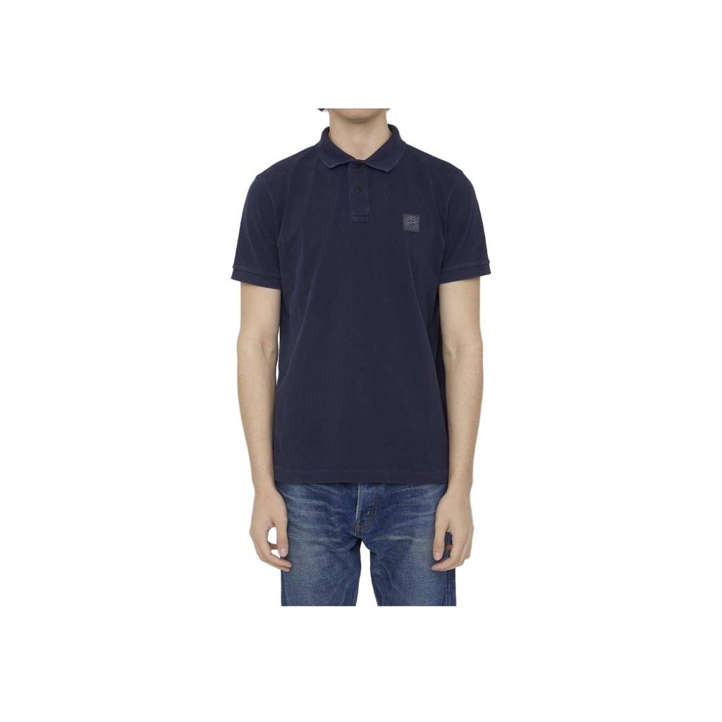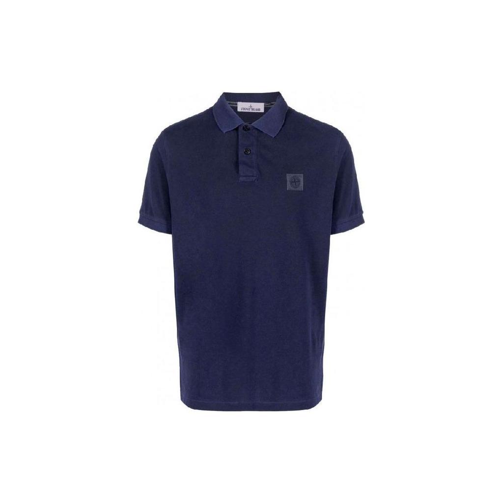 STONE ISLAND Однотонная футболка-поло с коротким рукавом и логотипом бренда для мужчин темно-синяя 10152SC67-A0020
