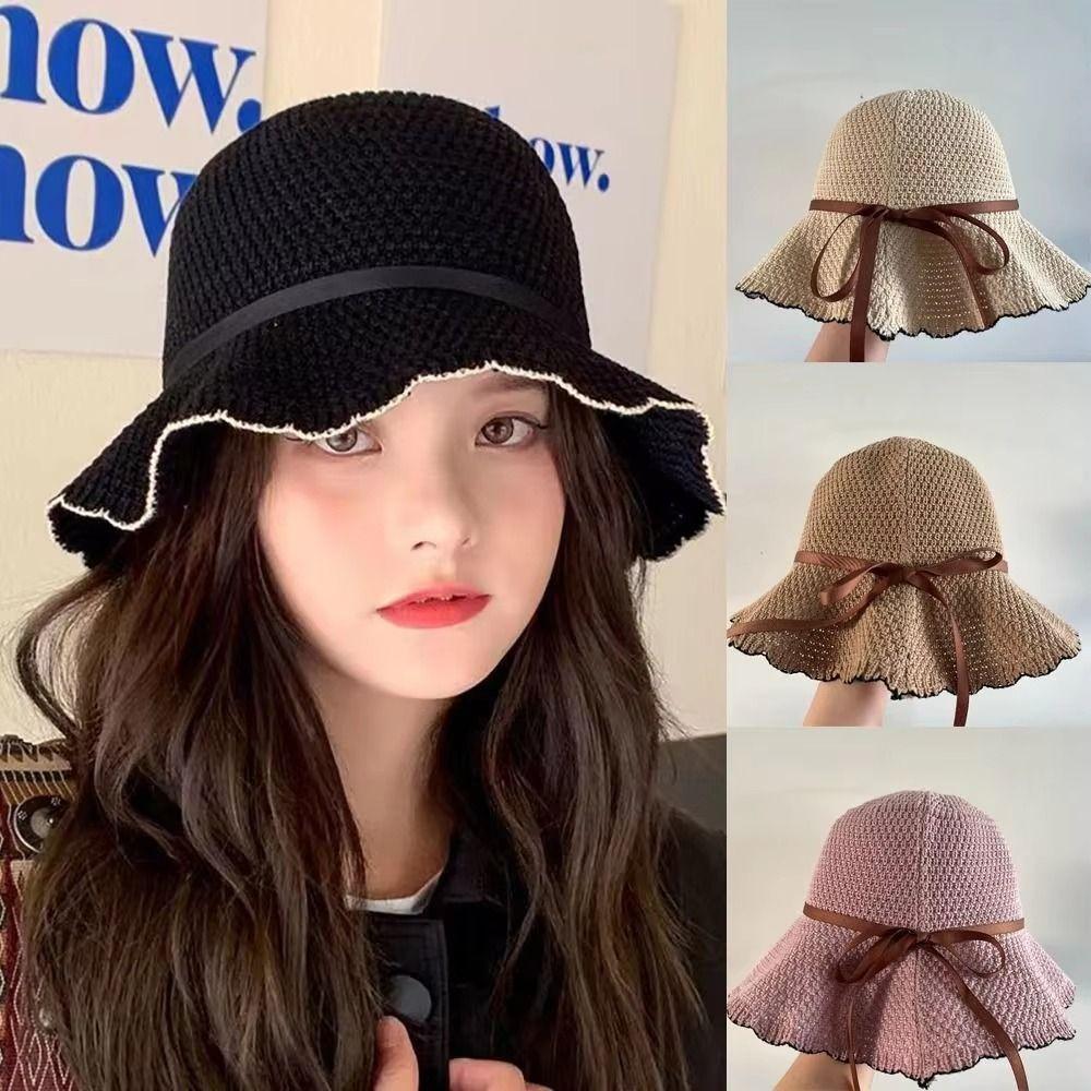 Вязаная панама с защитой от УФ-излучения, дышащая женская шляпа-ведро, модная вязаная шляпа-рыбак для девочек