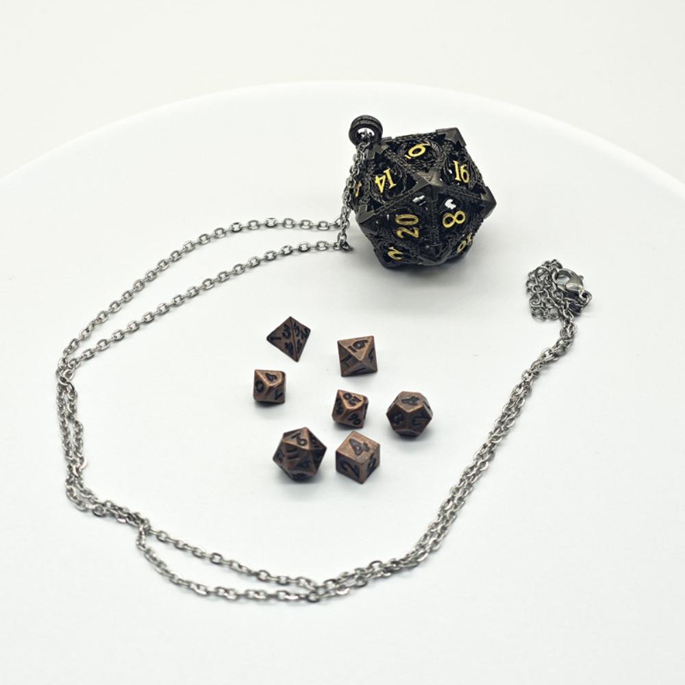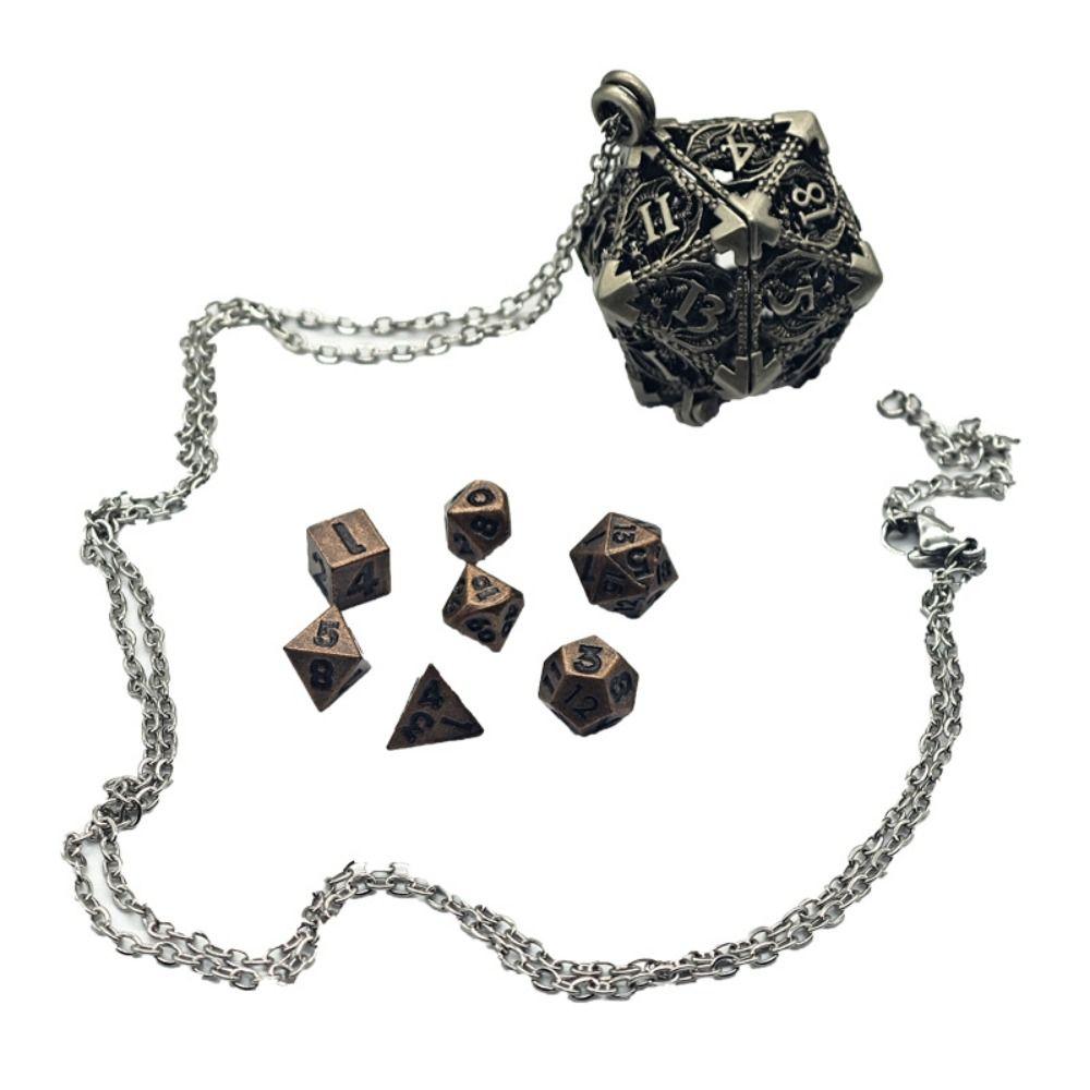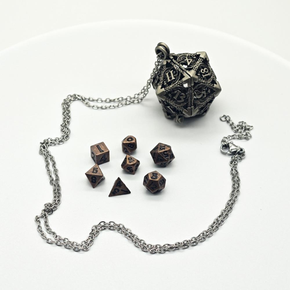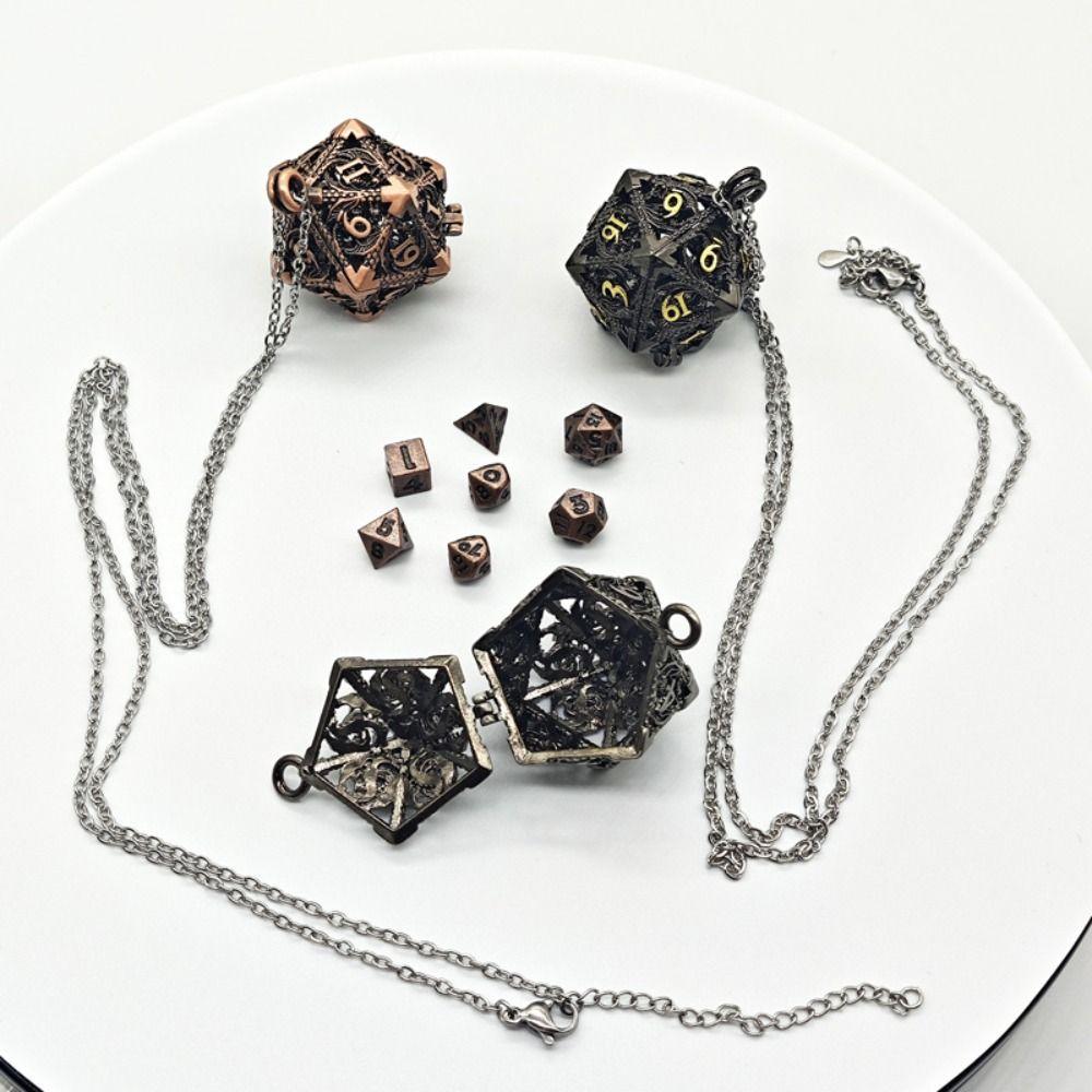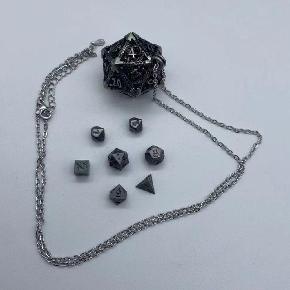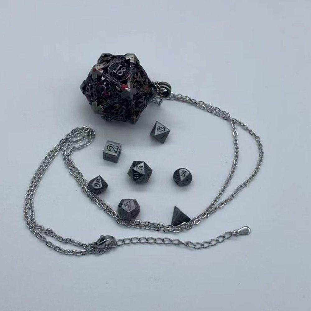 1 набор TRPG полые металлические кости ожерелье 20-гранные многогранные кости ожерелье подарок на день рождения