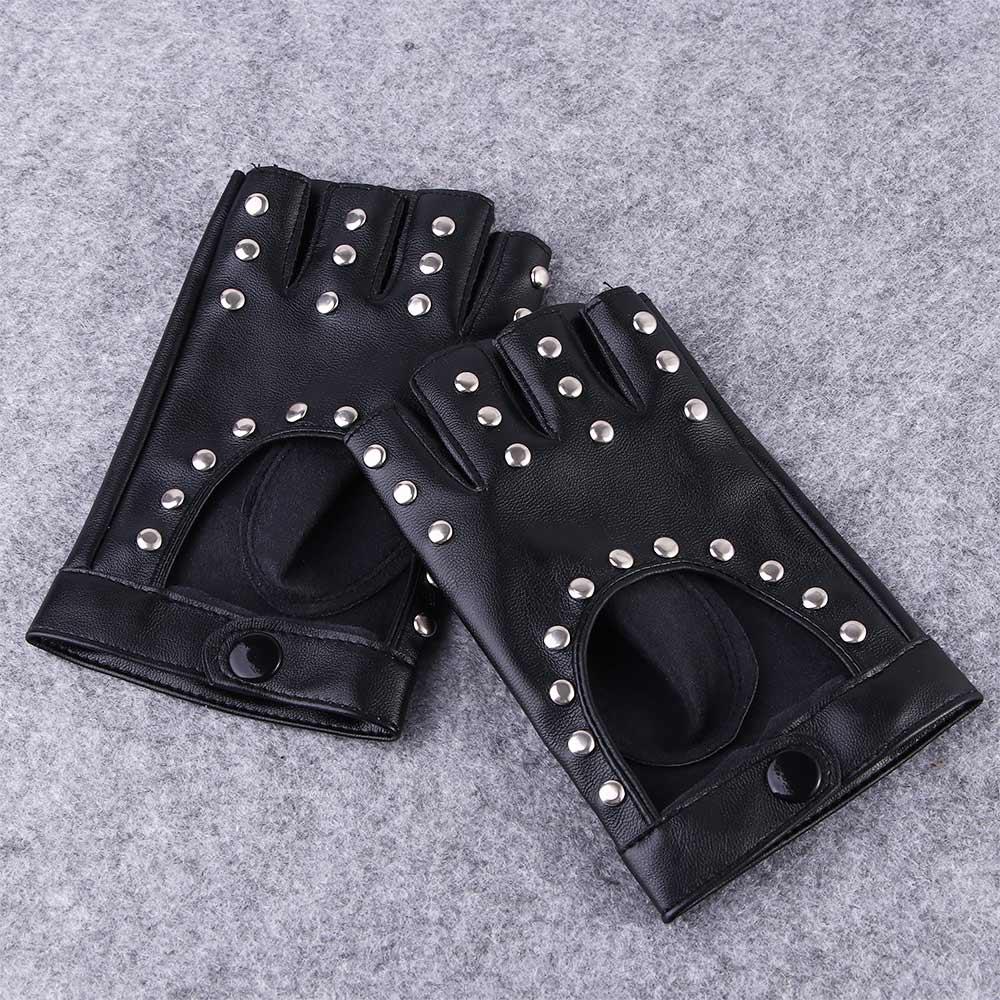 Уличные танцы Хэллоуин Митенки из искусственной кожи с заклепками Перчатки Перчатки без пальцев Модные аксессуары
