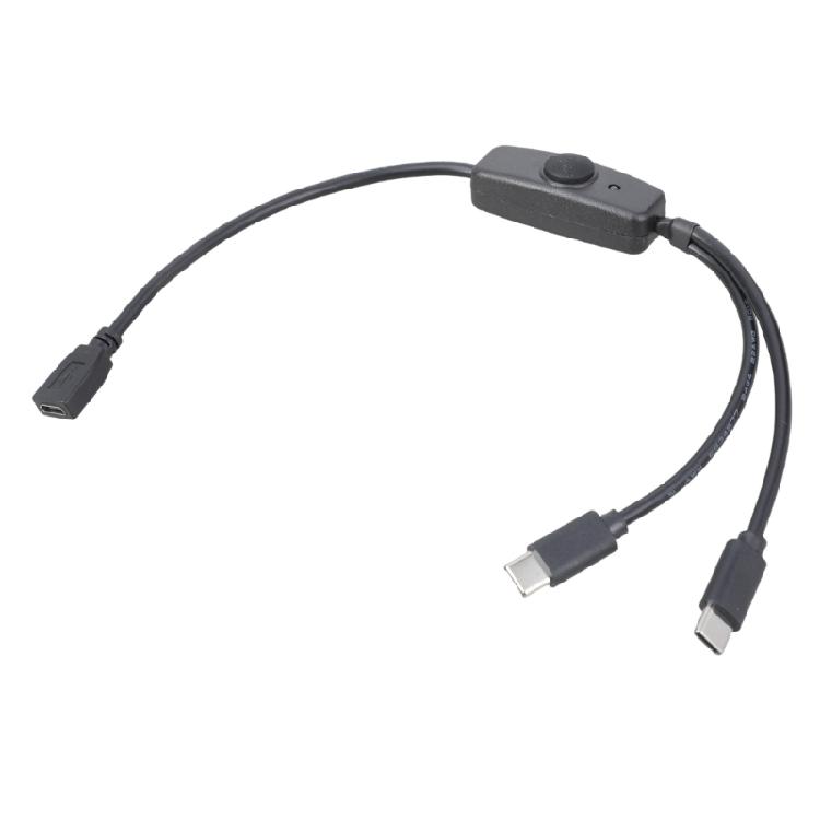 3A Charging Cord USB 5Pin to Type C Extension Cable 1 to 2 Built In Switching Button for Phones and Small Gadgets