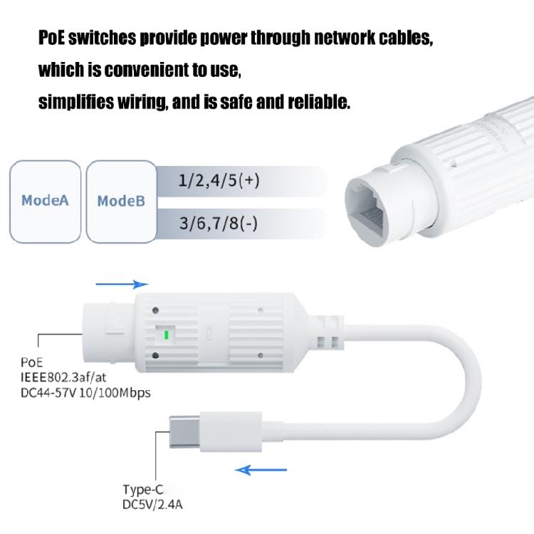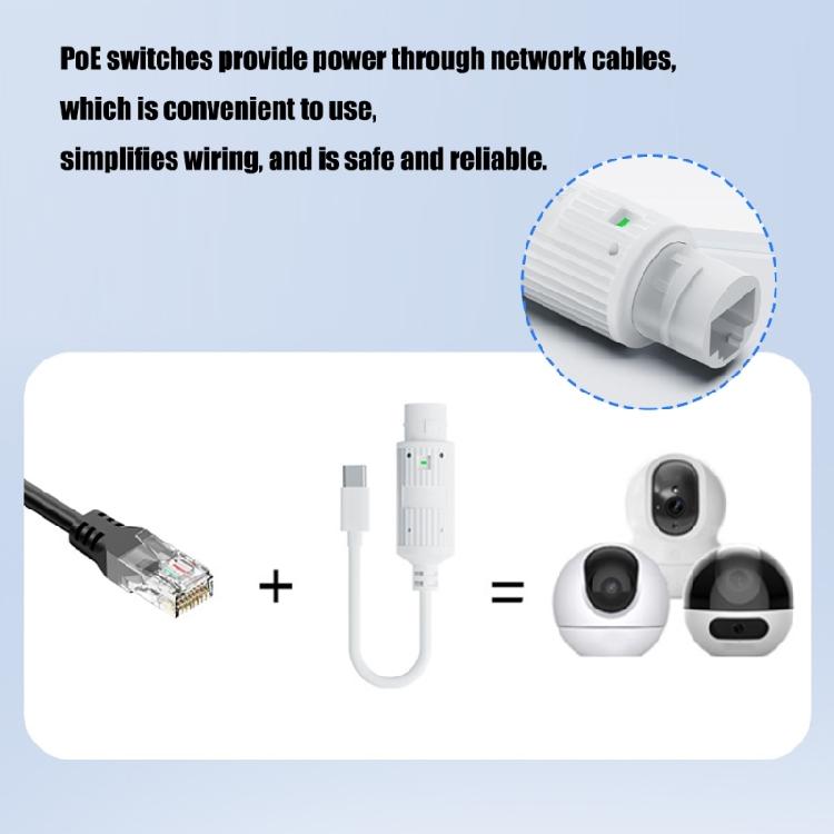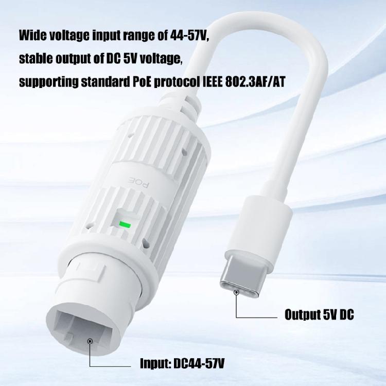 DC48V to 5V 2.4A Converter POE to Type C Adapter Plugs and Play Design for Intelligent Devices Multiple Devices Power Supply