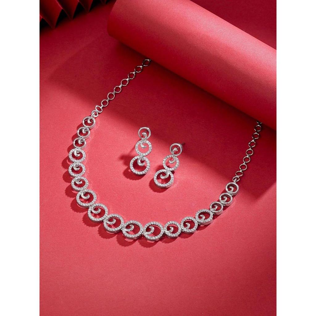 Набор украшений для женщин и девушек Набор украшений с американскими бриллиантами | Набор колье с AD с покрытием из розового золота и родия для женщин | Подарок на день рождения для девушек и женщин