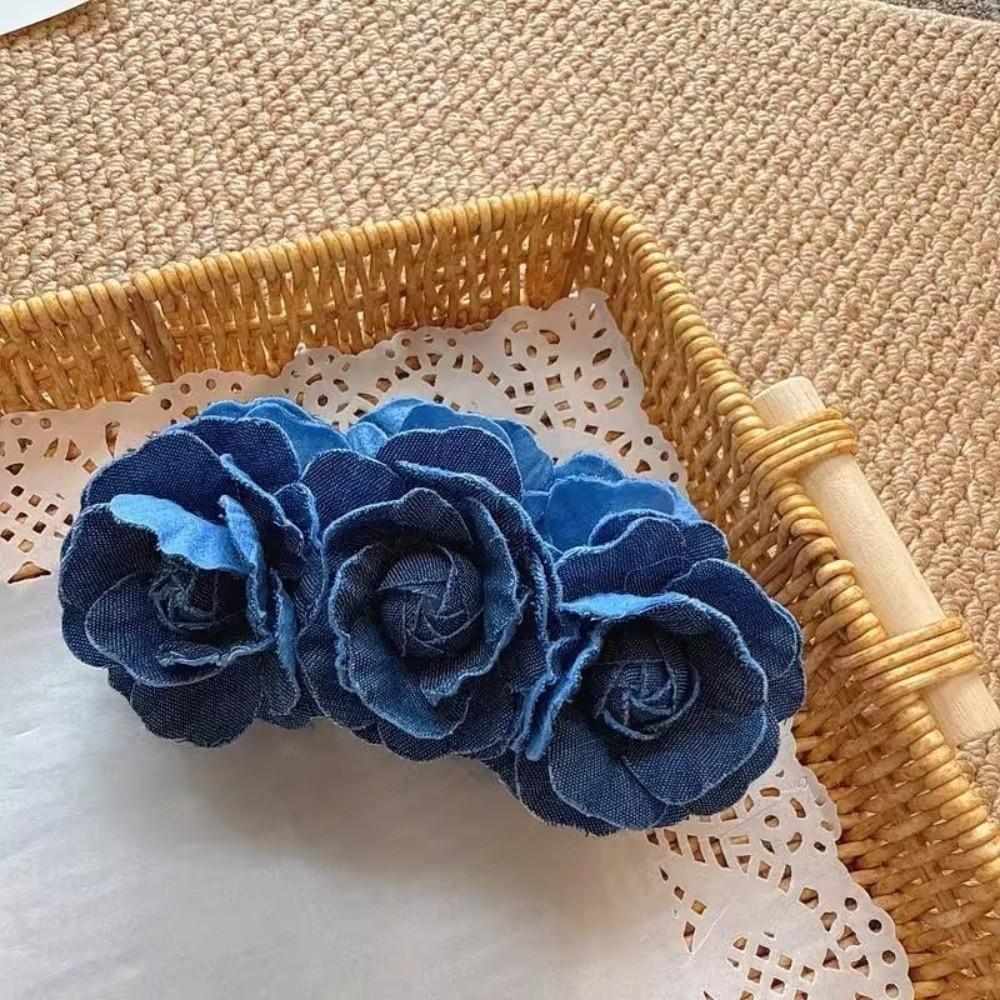 Korean Style Flower Banana Clips Denim Blue Floral Twisted Hair Clip Women Vertical Clip Girls