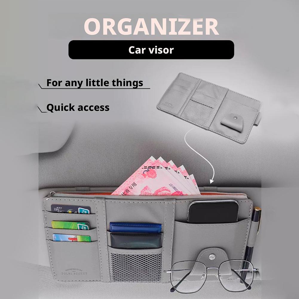 Многофункциональный органайзер на солнцезащитный козырек автомобиля - PU кожа, отделение на молнии для очков, билетов/визиток/ID, не блокирующий обзор для внедорожников/T W5U0