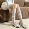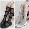 Летние Лолита Женские Носки Милые Трехслойные Оборки Кружево Сетчатые Чулки для Дам Тонкая Сетка Дышащие Высокие Носки с Лентами