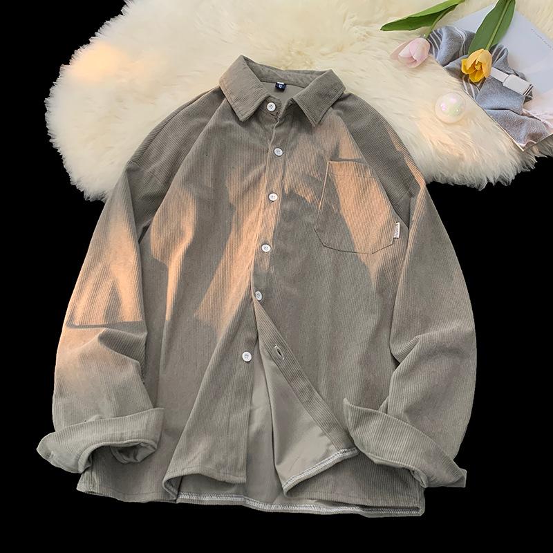 Мужская свободная рубашка с длинным рукавом на пуговицах из вельвета, повседневная, с карманом