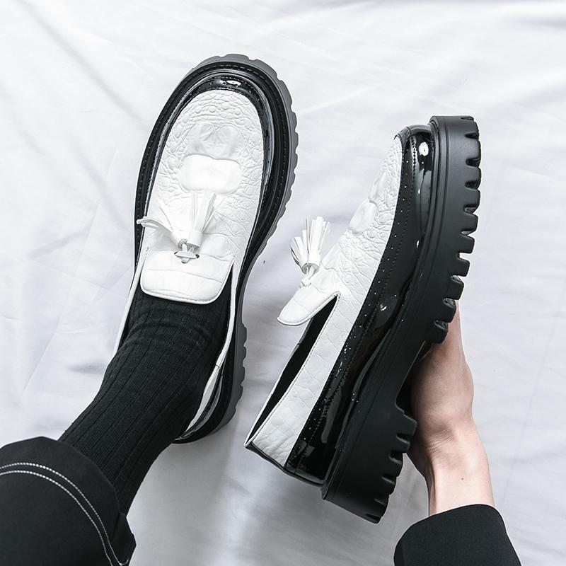 Модный парикмахер кожаная обувь Мода Британский стиль Повседневная вечеринка и ночной клуб Взрослые лоферы на толстой подошве Черно-белые 38-46
