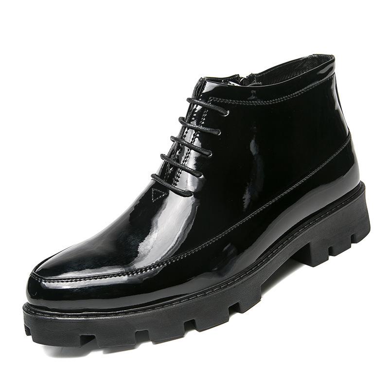 Модные ботинки на скрытом каблуке 6 см из лакированной кожи для мужчин, осенняя новинка, модные высококачественные черные ковбойские ботинки, мужские классические ботинки, рабочие ботинки Botas De Trabajo54