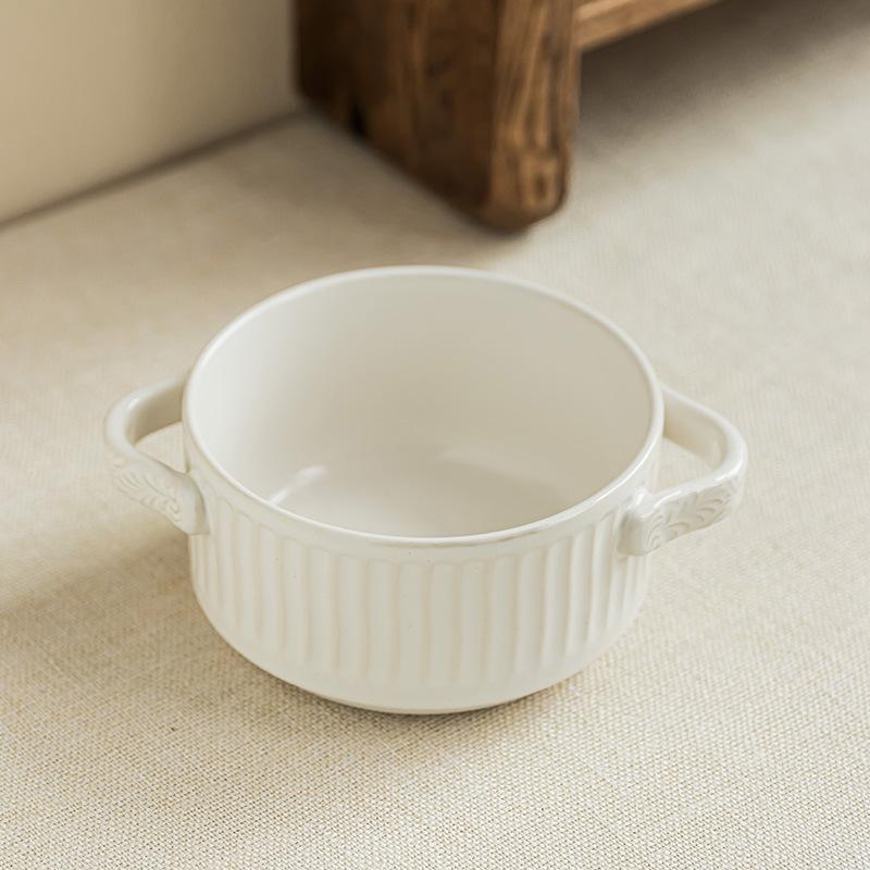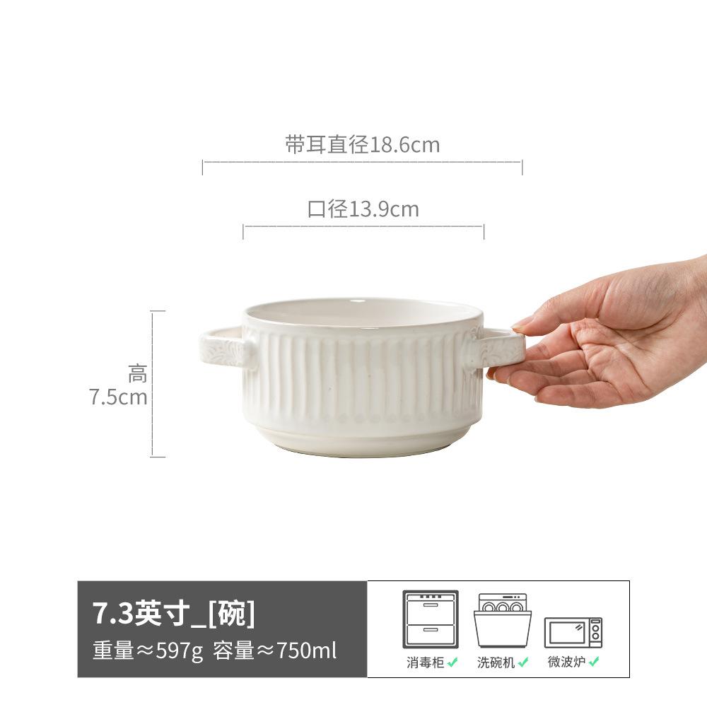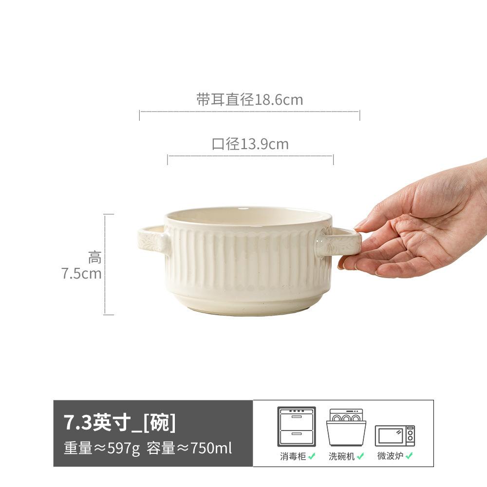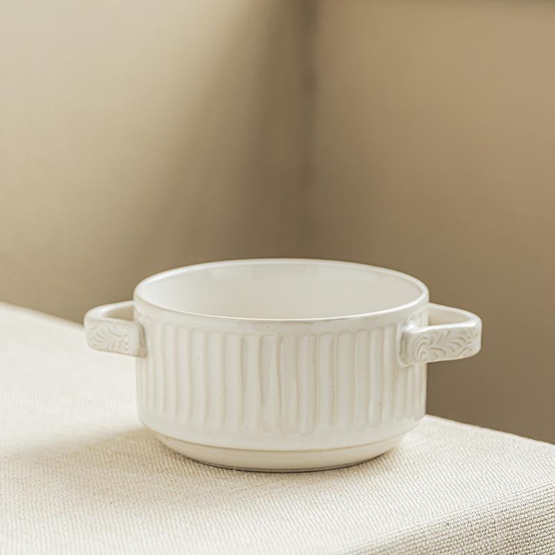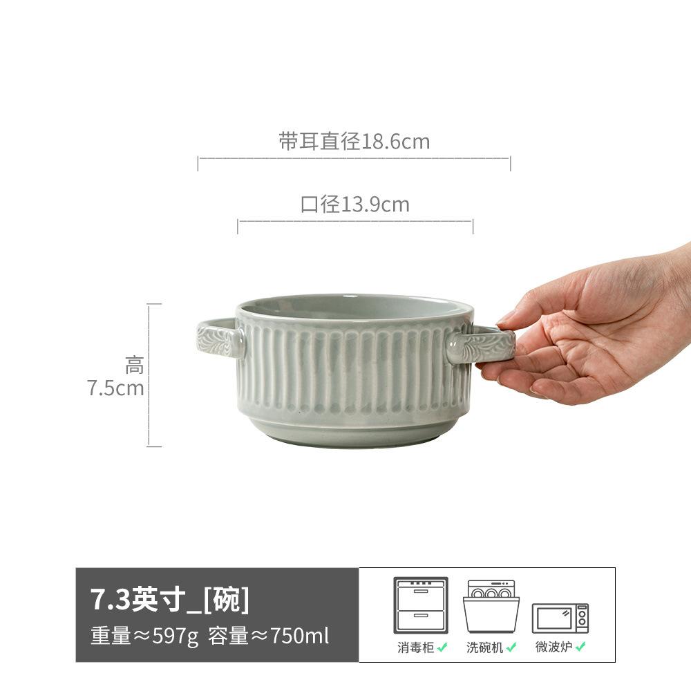 Тисненая вертикальная миска керамическая двухручная миска ресторанная простая посуда миска для запеченного риса бытовая тарелка миска противоожоговая миска для подъема руками