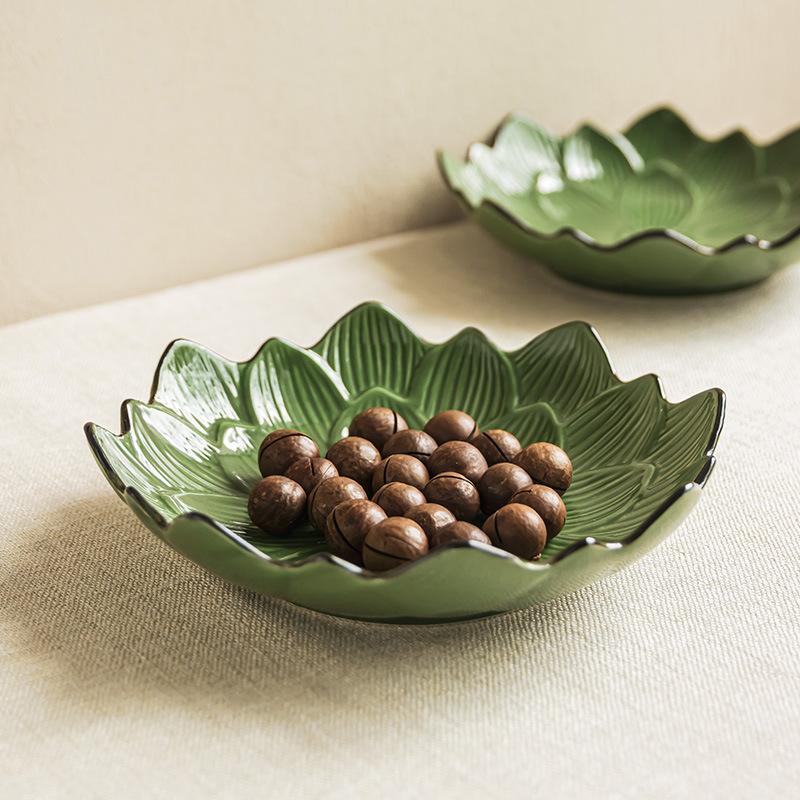 Нишевая керамическая фруктовая тарелка в форме цветка, Изысканная тарелка-лотос, Домашняя фруктовая тарелка, Тарелка для димсамов, Тарелка для ресторана