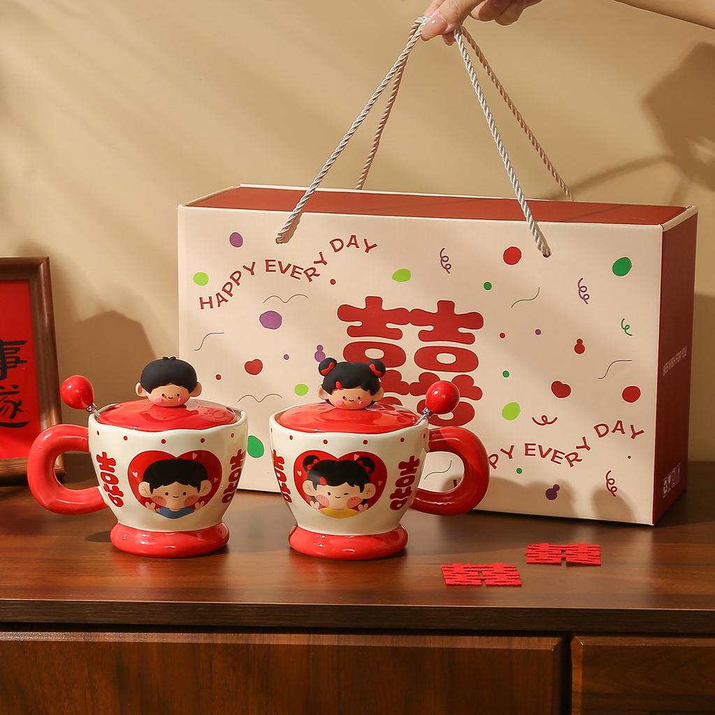 High-Value Boys And Girls Couple Cup Cartoon Ceramic Water Cup Wedding Souvenir Mug Large-Capacity Wedding Gift